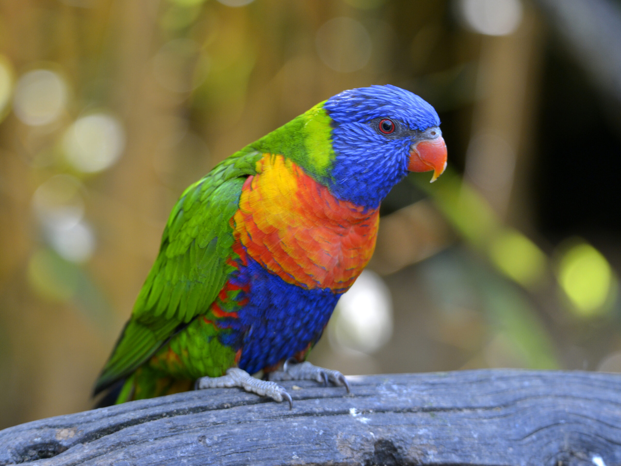 A multi-coloured member of the parrot family, the Coconut Lorikeet is of the same family as the Rainbow Lorikeet. Their feathers range from black and blue on their heads, to a yellow or green ring around the neck, to a red breast, green abdomen and orange and yellow wings. They are very commonly trapped for the wildlife pet trade, causing significant decline in population.