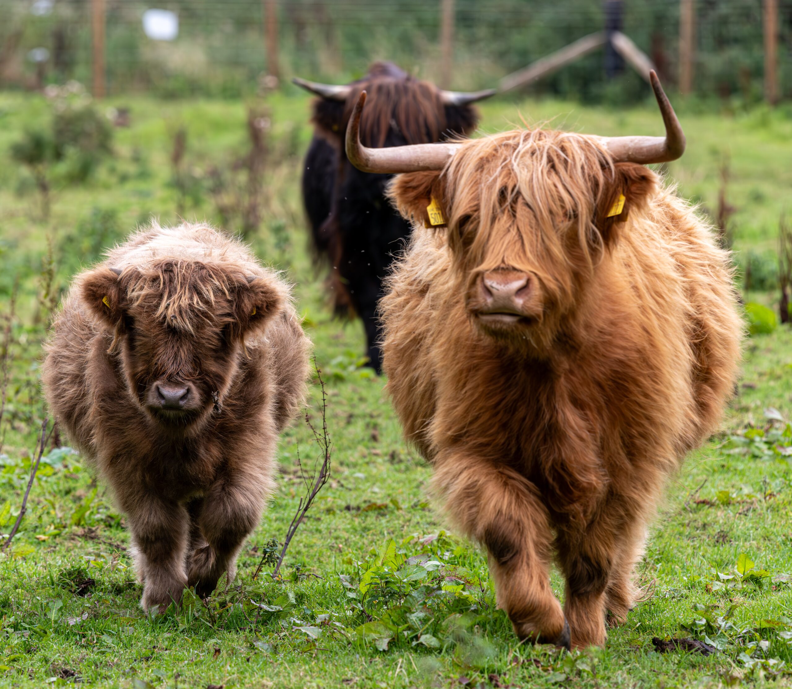 The iconic animal of Scotland, Highland Cattle are the oldest known cattle breed. Possessing a shaggy coat in varying shades of ginger, brown, black and cream, they are often raised as a source of meat while also being a contributor to the UK tourism industry. Males and females can be easily distinguished by their horns- they will come straight out of the head and curve forward in the bulls, while cows’ horns will extend upward with a fine point.