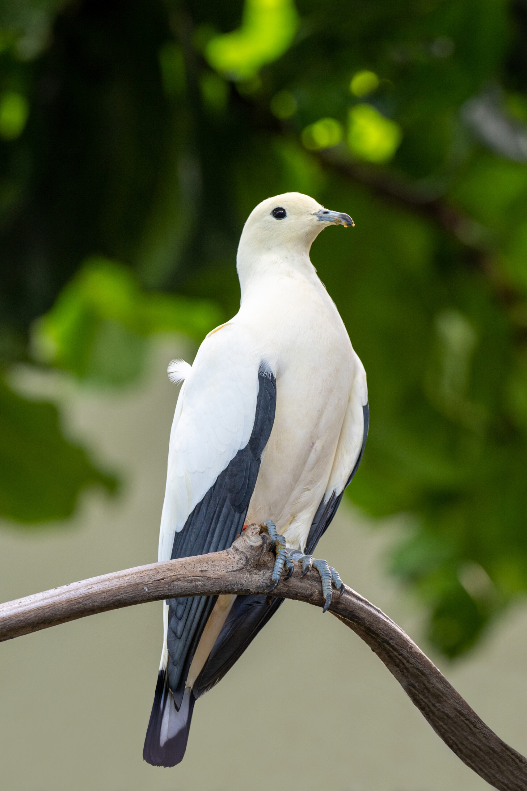 Primarily white or cream in colour, the Pied Imperial Pigeon has black feathers on the edge of its wings, tails and a dark beak and eyes. They are not a migratory bird but will fly from the coast inland each day in order to forage for food in the trees. No true population estimates exist at this time but it is assumed that the overall population is decreasing due to continued habitat loss.