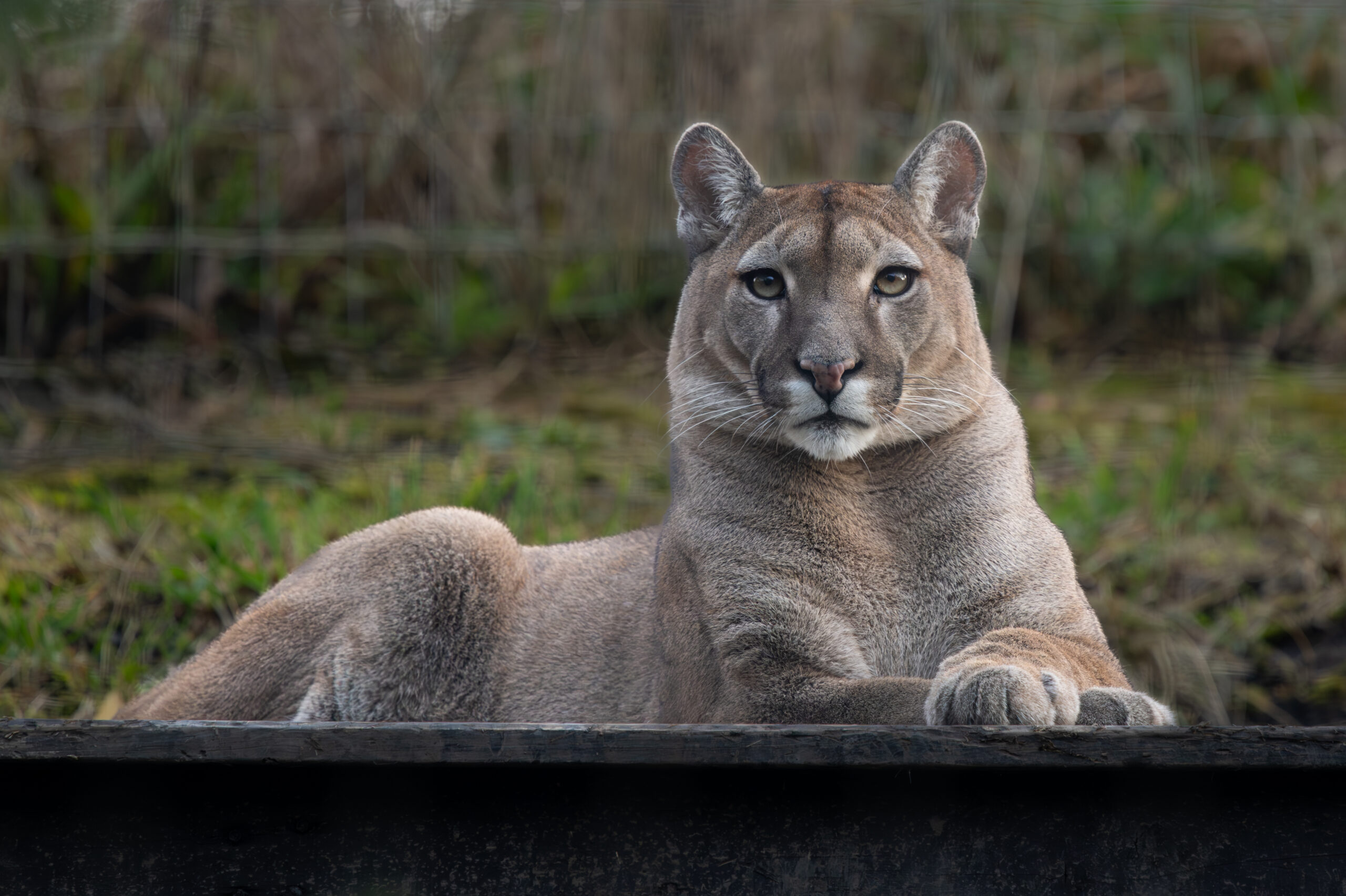 With the largest geographic range of all terrestrial mammals in the Western Hemisphere, the Puma can be found from northern Canada into South America. They care called many different names across their range, including Mountain Lion, Cougar, and Florida Panther. Coat colours can range from a silvery-grey through to reddish brown with distinctive dark patches on their legs and white on their chins, bellies, and throat. They have a distinctive ‘scream’ vocalization used to communicate over distances, along with several other types of vocalizations.