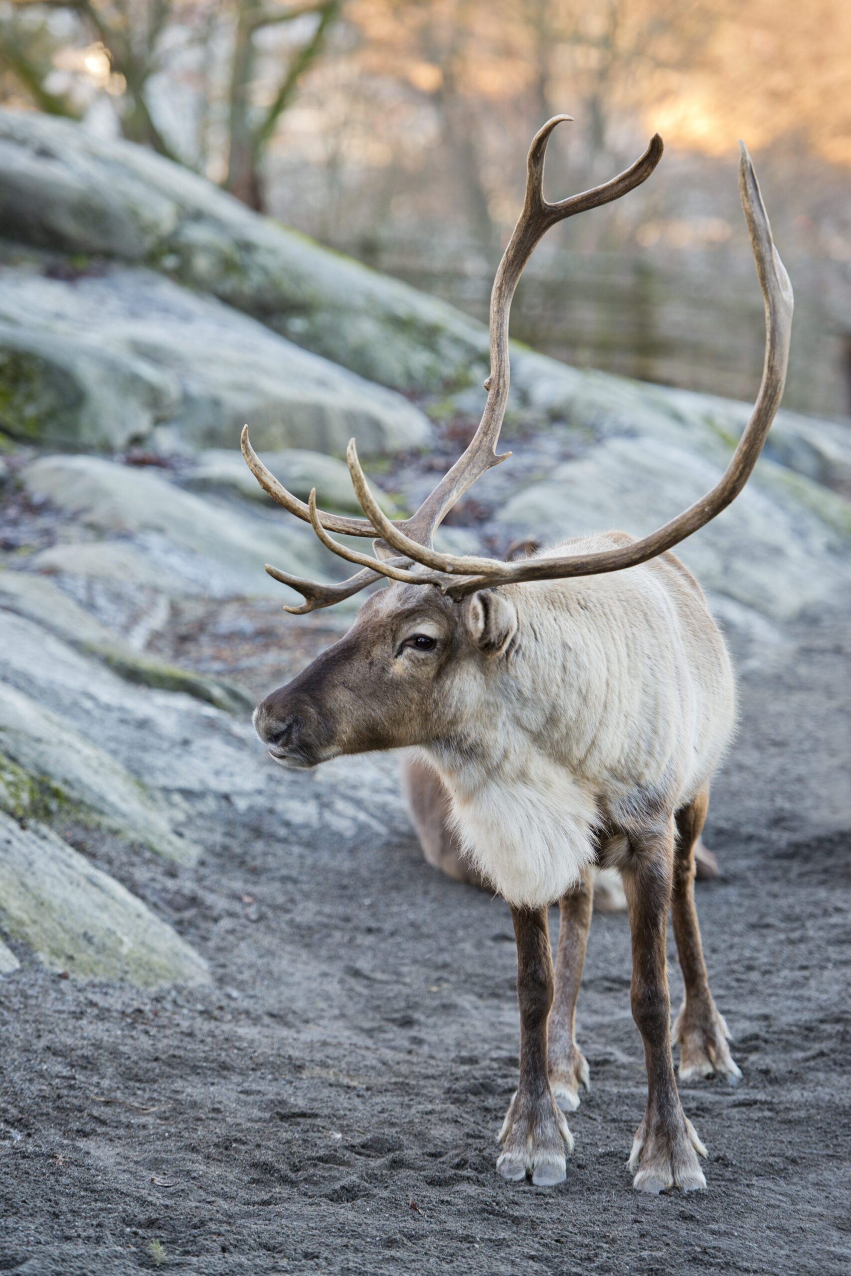 Known as Reindeer in Europe and Caribou in North America, this species maintains wild, semi-wild and captive/domestic populations. In the wild they are a continually migratory species, with herds moving across hundreds of kilometres in search of food throughout the year. Both male and female reindeer possess antlers which are grown and shed every year, with the antlers the following year growing back larger than the year before.